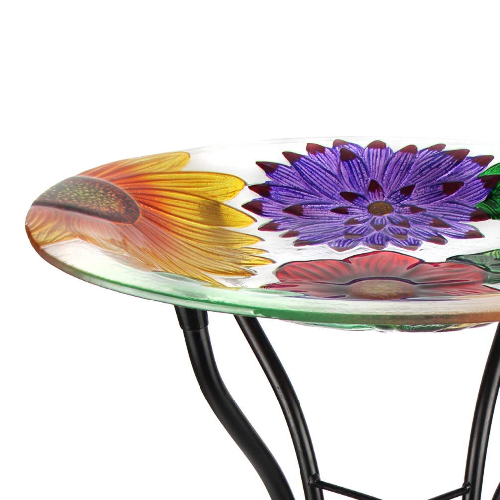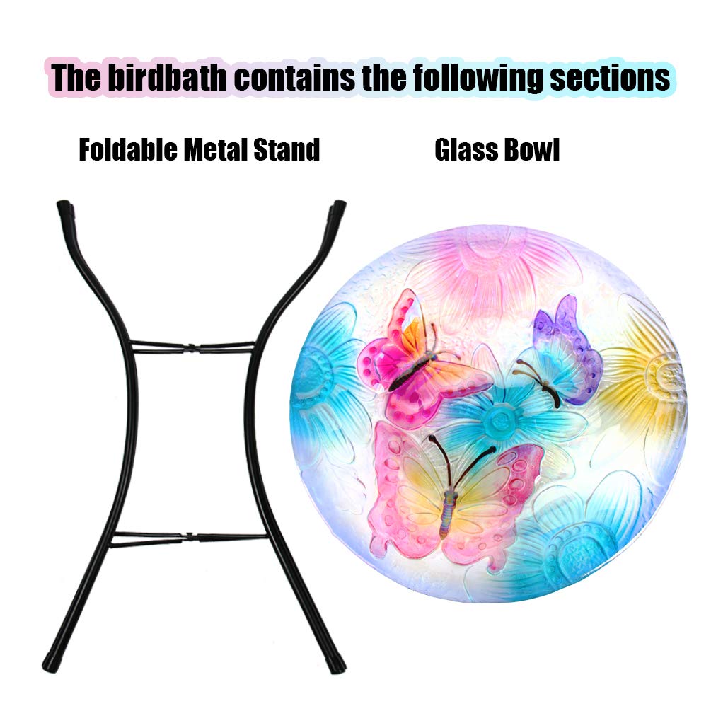 HONGLAND Birdbath Outdoor Bird Feeder Glass Butterfly Bowl for Garden with Metal Stand Decor for Patio,Backyard,Porch